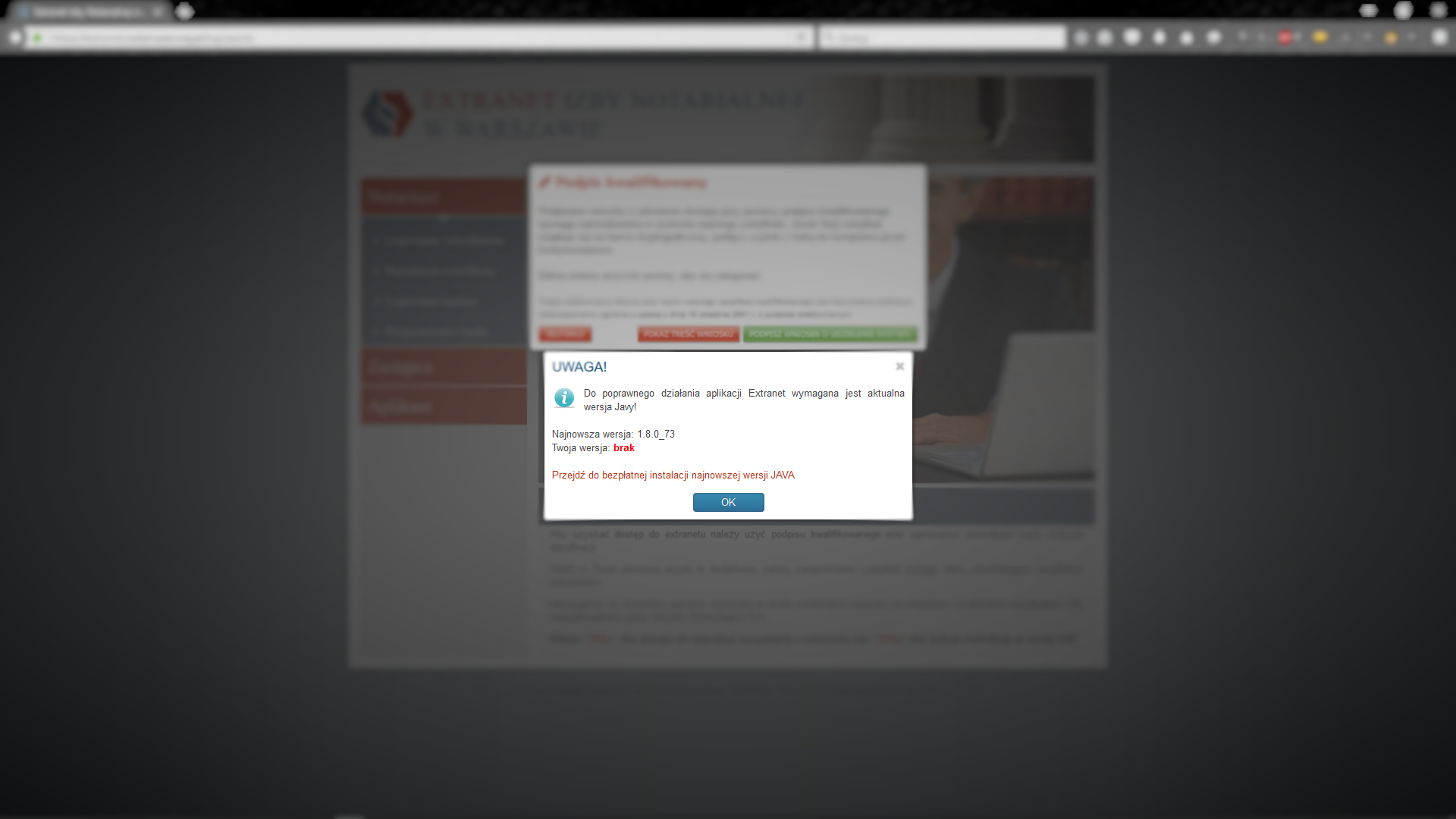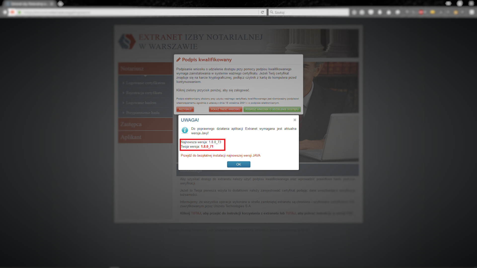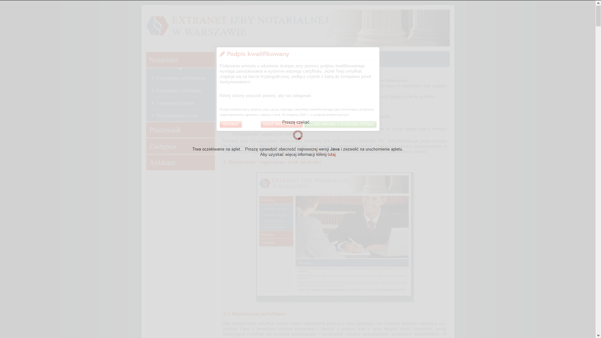 5.4 Domyślnie zablokowany aplet JAVA dla domeny https://extranet.notariusze.org.pl/ (Mozilla Firefox / Internet Explorer)