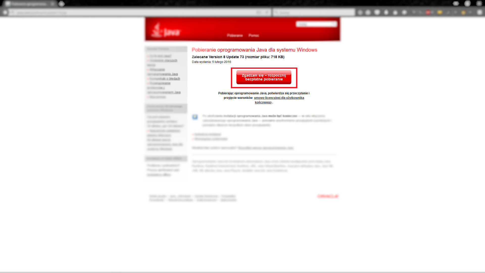 Klikamy na "Przejdź do bezpłatnej instalacji najnowszej wersji JAVA"